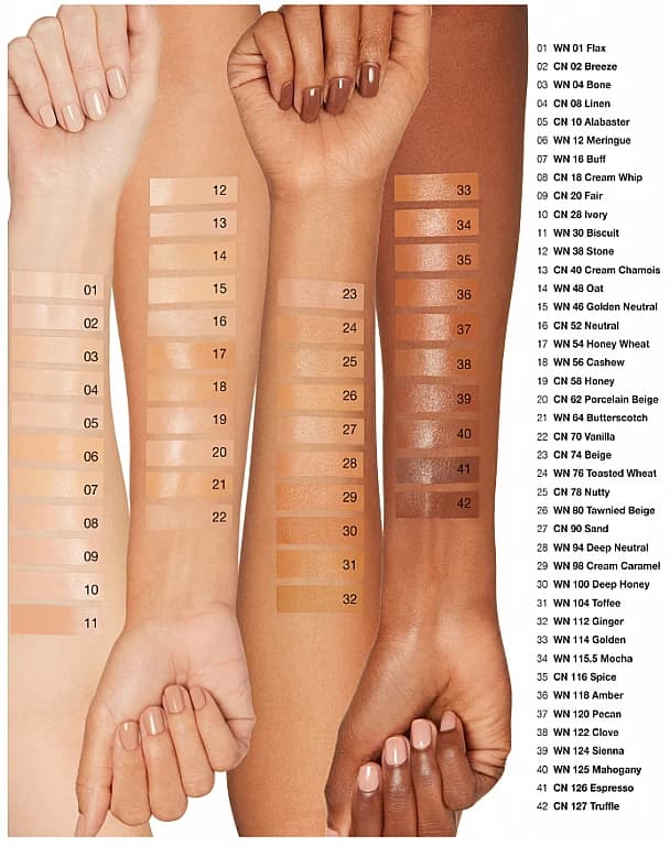 Alle haben dasselbe Problem, die richtige Farbe neben 42 Nuancen zu finden. Ich habe jedoch einen Tipp für dich: Schaue doch mal auf die Unterseite deines Handgelenks. Solltest du bläuliche Venen zu sehen bekommen, bist du ein kalter Hauttyp. Die Venen eines warmen Hauttyps sind eher grün. Die Bezeichnung CN steht für kalt neutral und WN steht für warm neutral.