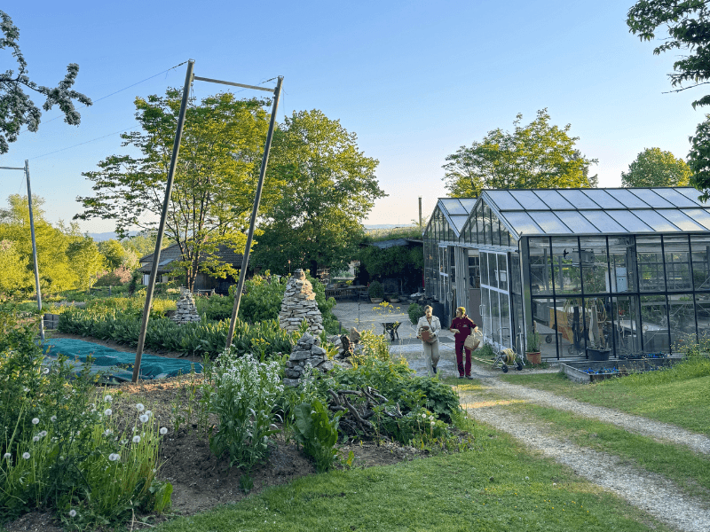 Neben der Vielfalt an spannenden Pflanzen gibt es im Garten auch einen Naturteich und 500.000 Haustiere, die fleissig im Garten mithelfen. Es sind 20 Bienenvölker, die den Garten in vielerlei Hinsicht am Leben halten.
